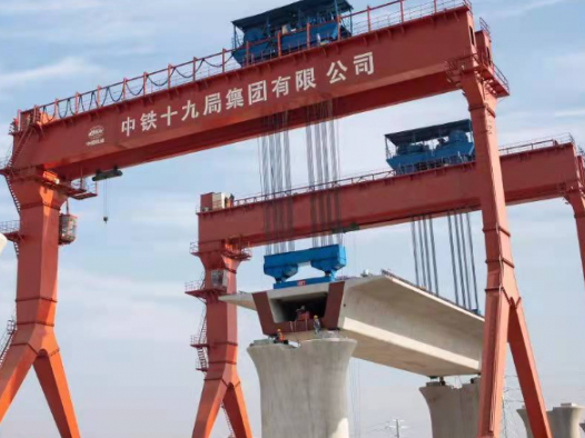 榀長32.6米、寬12.6米、高3.035米、重821.86噸的預制箱梁經過跨墩提梁機的拖拽牽引,落至預定橋墩位置,而鋼絲繩葫蘆被用于輔助吊運工作中。除此之外,葫蘆還能在力所能及范圍內吊運其他類型的重物,為重物的吊運和精準定位提供了便利。
